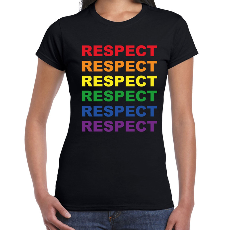 Regenboog Respect gay pride zwart t-shirt voor dames